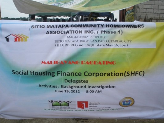 Taken during a meeting with SHFC officials and Sitio Matapa Community Homeowners Association, Inc., held in Brgy. San Pablo , Tarlac City, on June 19, 2015